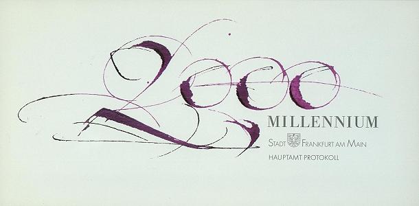 Einladungskarte zum Neujahrsempfang 2000 der Stadt Frankfurt am Main.