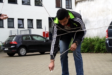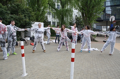 Für die Säulen-Performance sammelten die Schülerinnen und