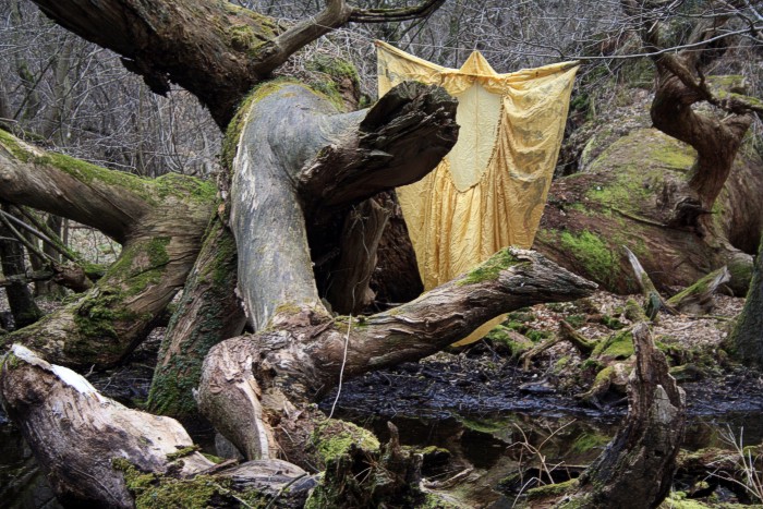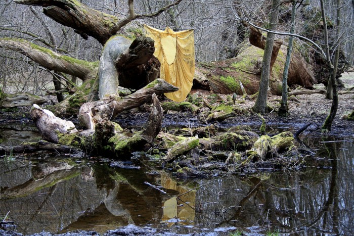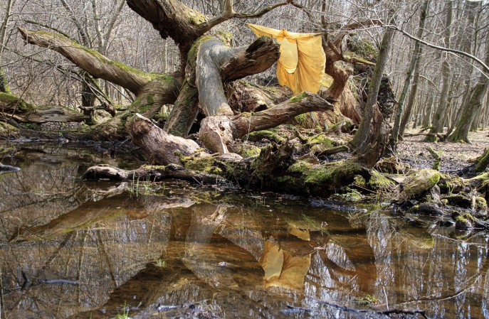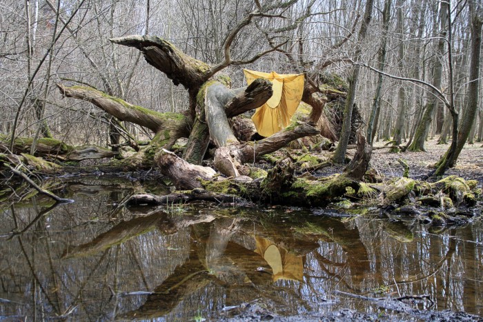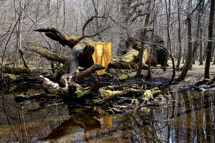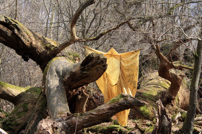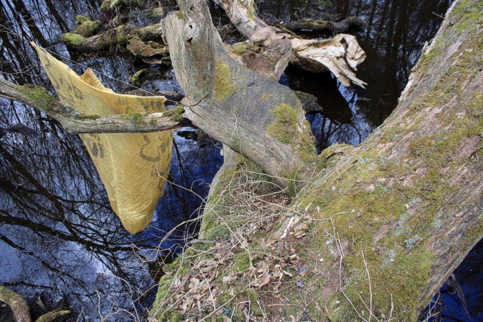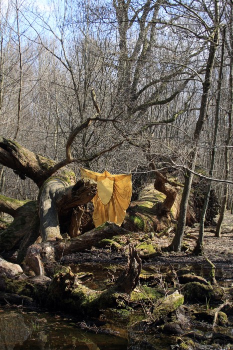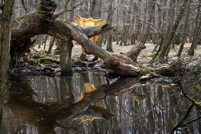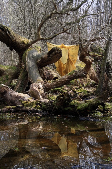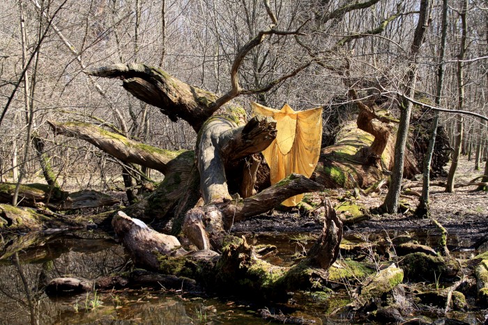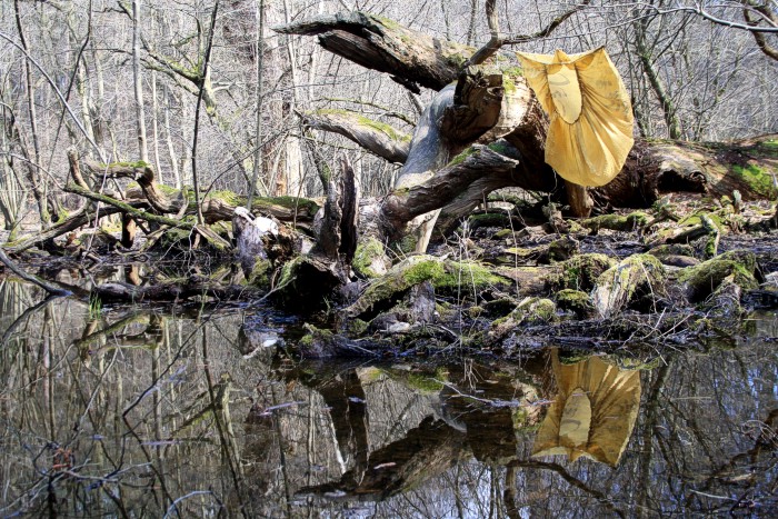 7.4. 2013, 12 -14 Uhr, vor Jahren umgestürzter Eichengigant tief im Wald, kleines Wasserloch, kalter, später Frühling