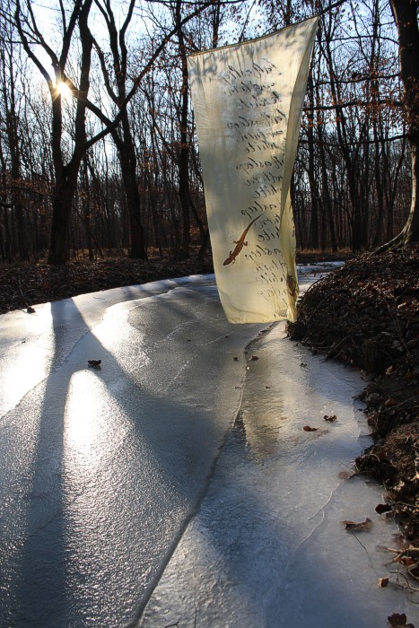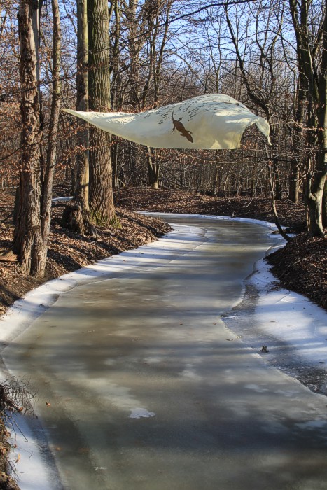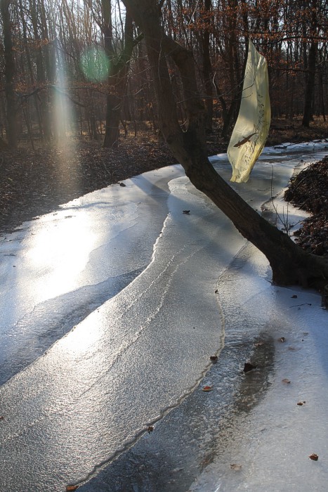 3. 2. 2012, 15:20 Uhr, Waldbach nach mehreren Tagen strengem Frost, kein Schnee, Sonne, leichter Wind