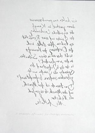 Die spiegelverkehrte Schrift als Träger der geistigen Botschaft verbildlicht das Paradoxum,