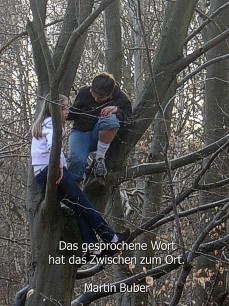 Nun, beim Sprechen entwickelt man einen Gedankengang in Beziehung zu einem Gegenüber. Im Denken ist das Gegenüber man selbst – aber es gibt immer ein Gegenüber. Sprechen ist Ausholen auf den Anderen. Redend kann ich auf die Situation, auf Einwände oder Vorschläge eingehen. Ich bin Teil der Empirizität und Sinnlichkeit der Welt. Sprache ist Ansprache, nach Martin Buber, dem großen Denker des DU, und er sagt auch: „Sprache ist das aussendbare Element der Seele. Sprache hat das Dazwischen zum Ort.“ [4]