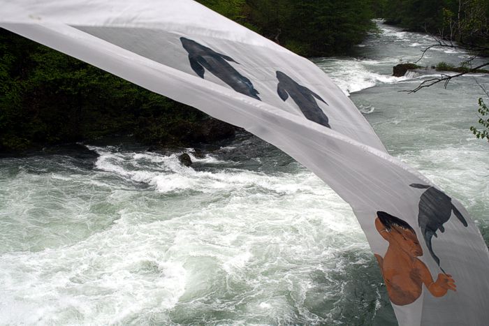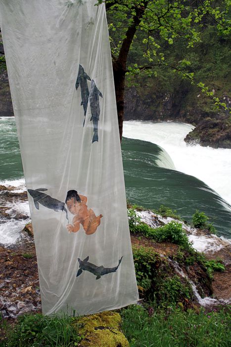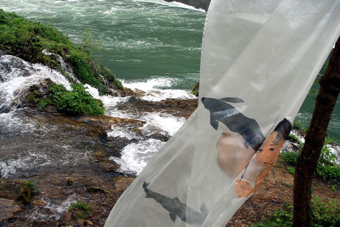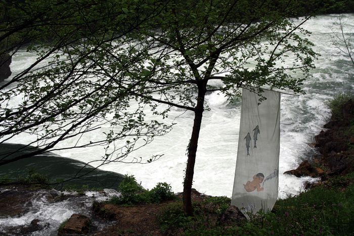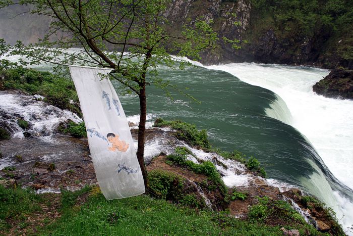 Kindertuch an den Wasserfälle der Una bei Strbacki Buk, Bosnien