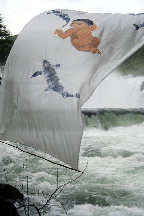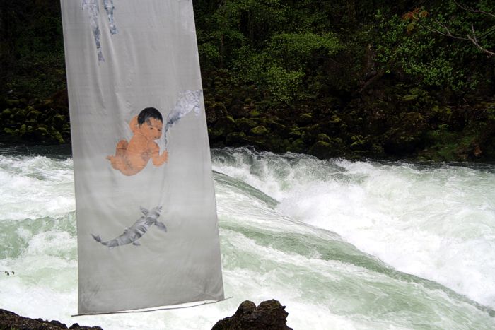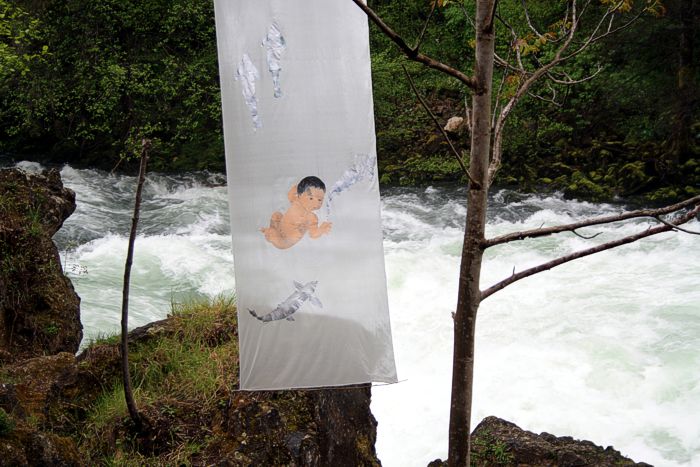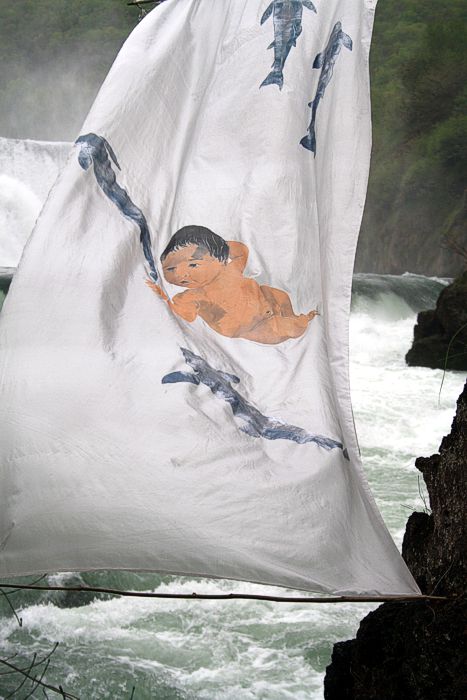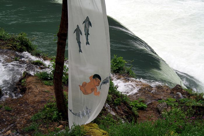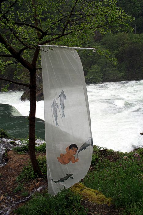 Das Neugeborene ist noch verbunden mit dem endlosen Entstehen und Vergehen, dessen Symbol der Fluß ist. |