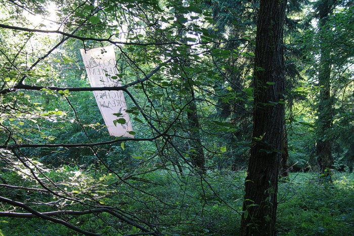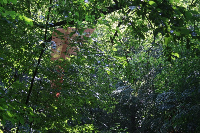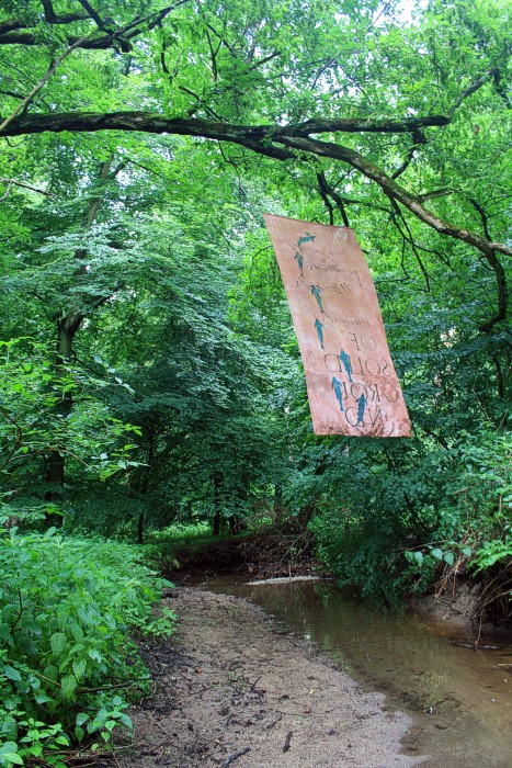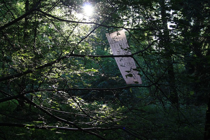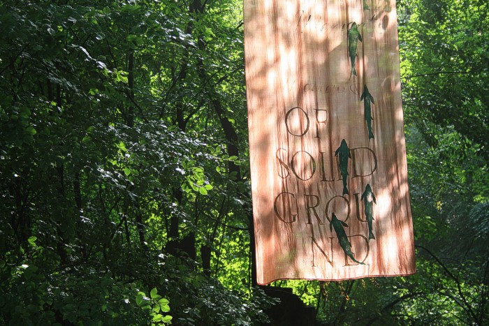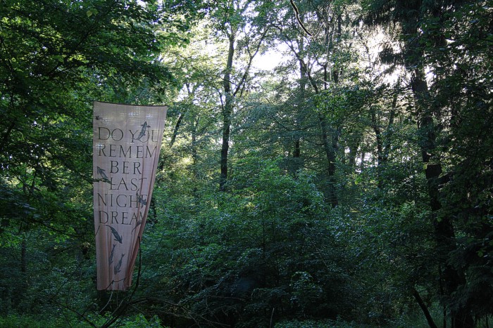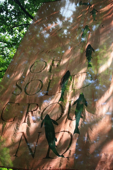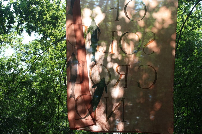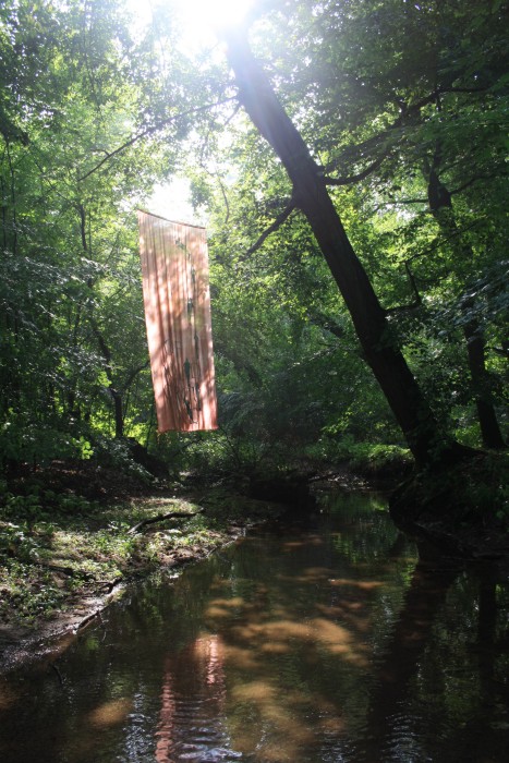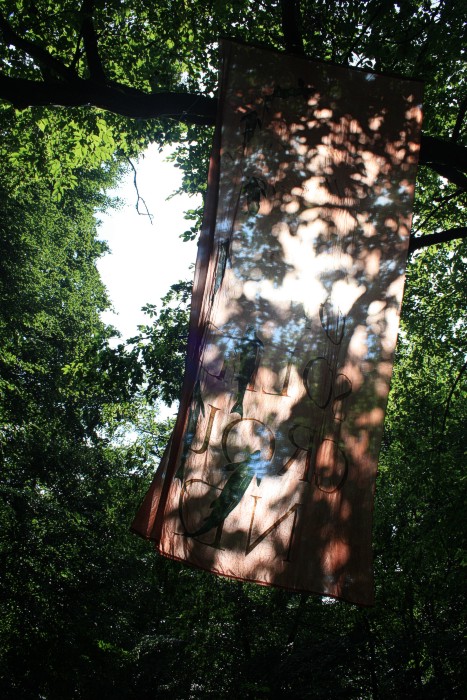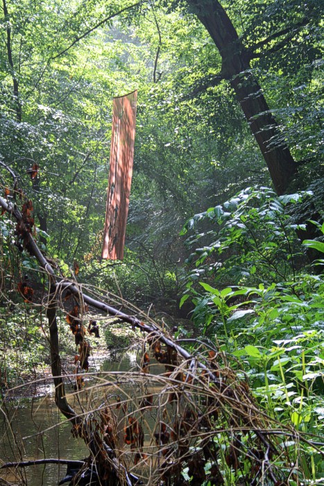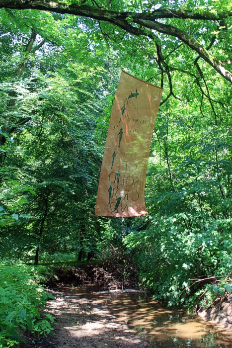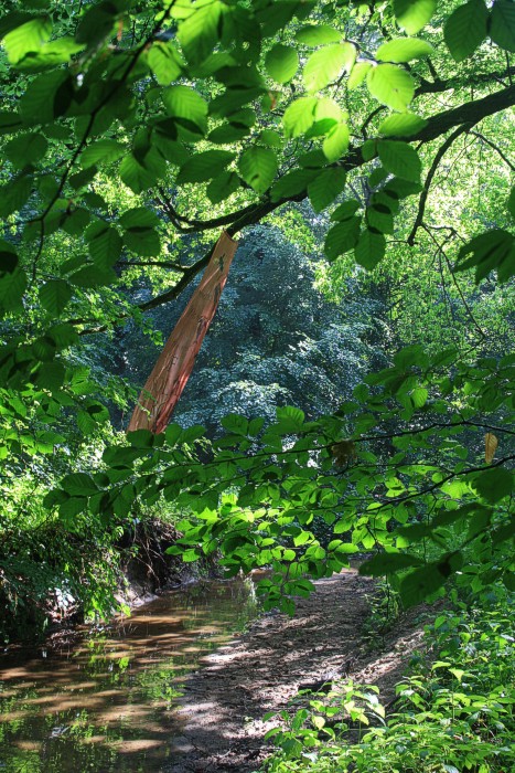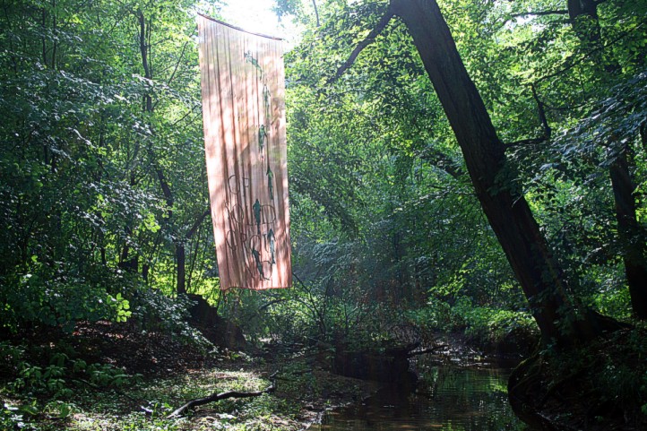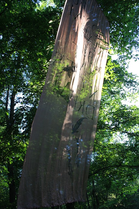 6. 6. 2011, neues Fischtuch mitten im Wald, der Bach war nach langer Trockenperiode wieder geflutet.