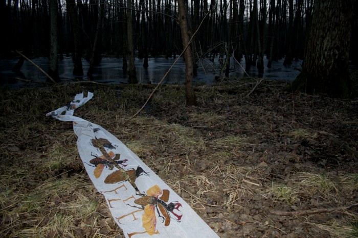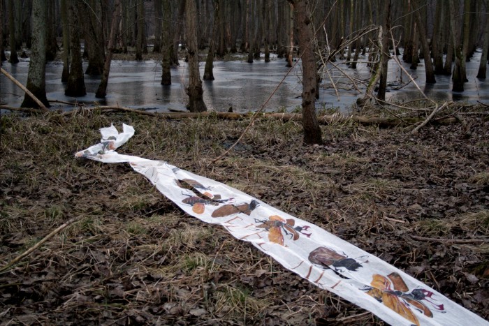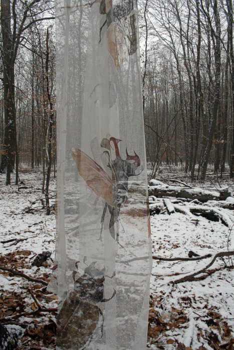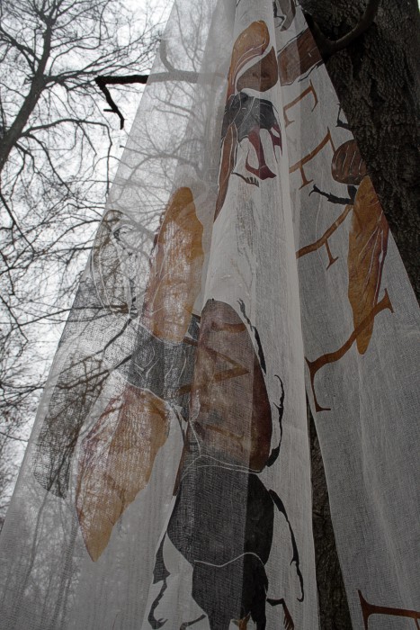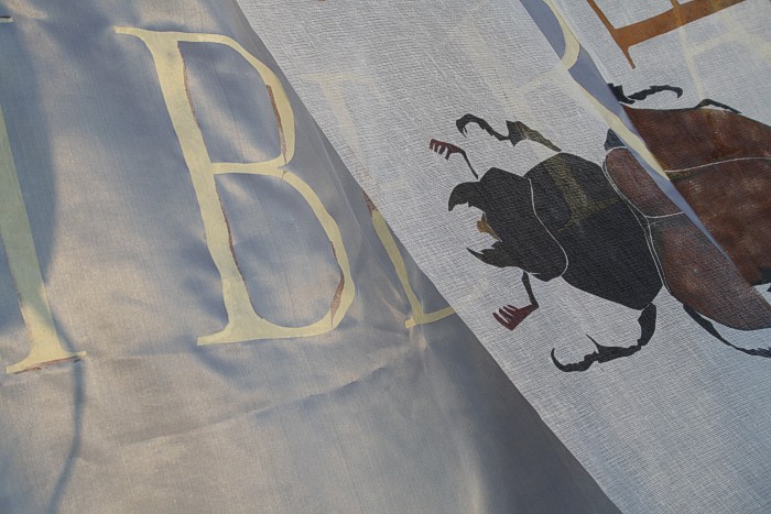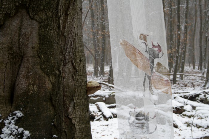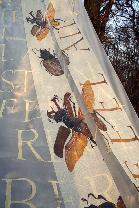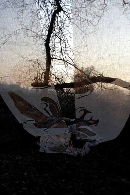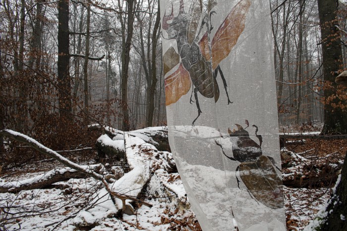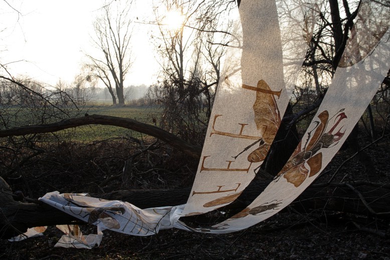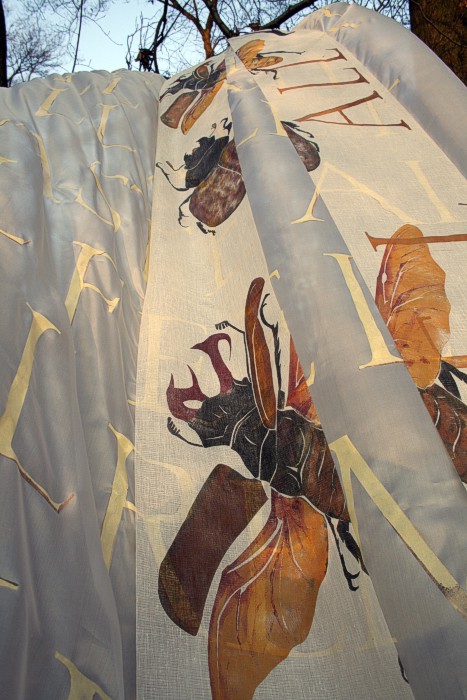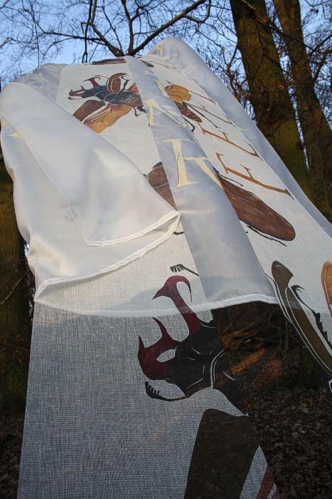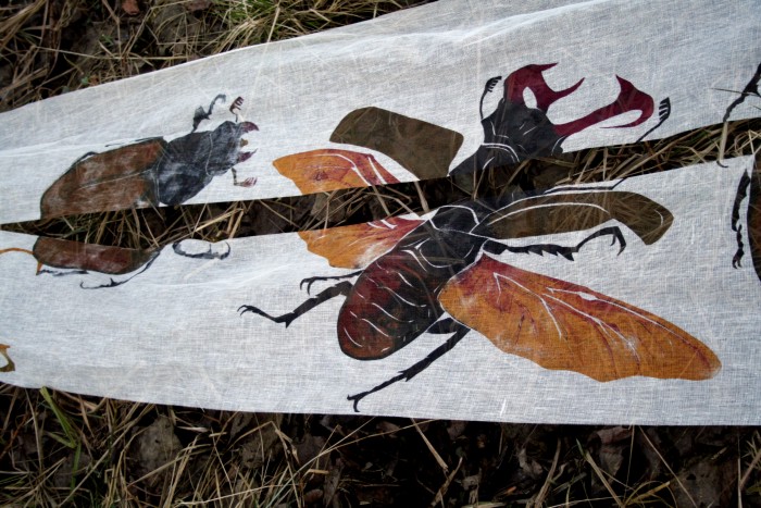 Das erste Hirschkäfertuch ist nicht aus Seide sondern aus Schürting, einem Gazegewebe aus der Buchbinderei. |