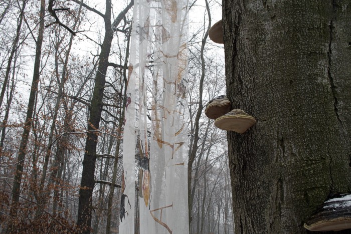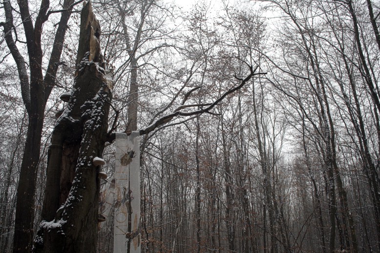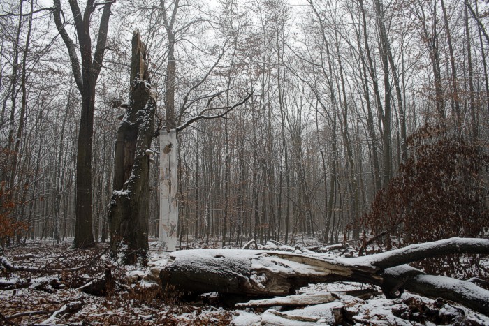 abgestorbene Buche, letzter Schneefall, 24. Februar, mittags |