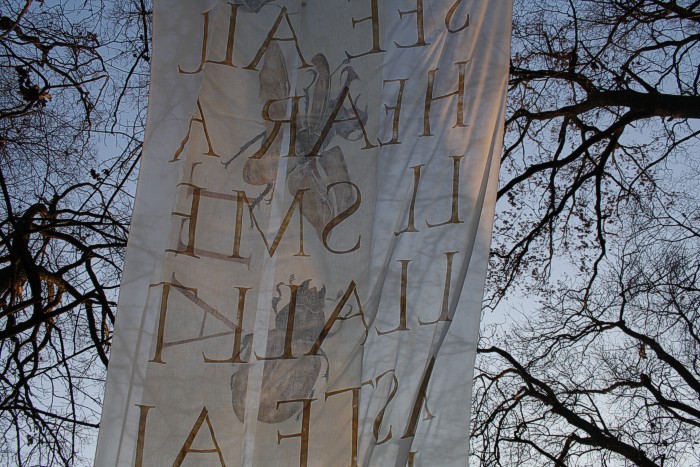 Das Hirschkäfertuch ist - wie auch das Rosentuch - gleichzeitig mit einem Schrifttuch entstanden.