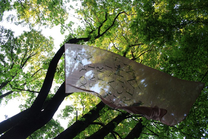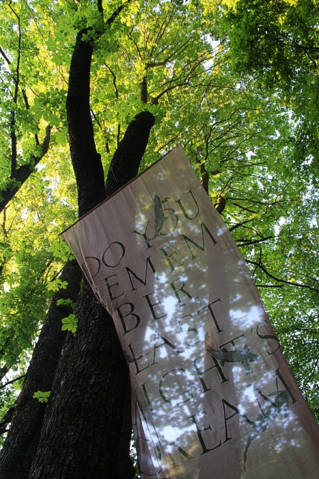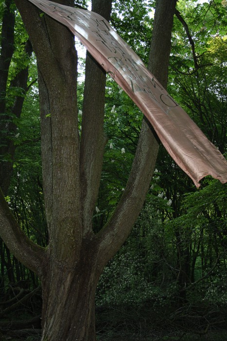 Der Beginn des Absterbens wurde genau in der Woche der Installation durch das Abbrechen einer in voller Blüte stehenden Baumkrone eingeleitet.