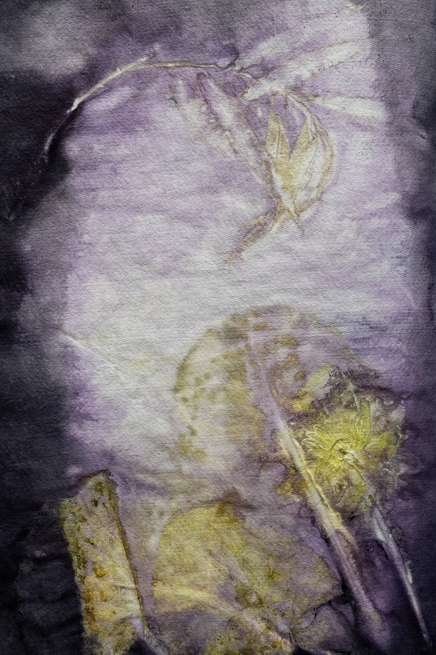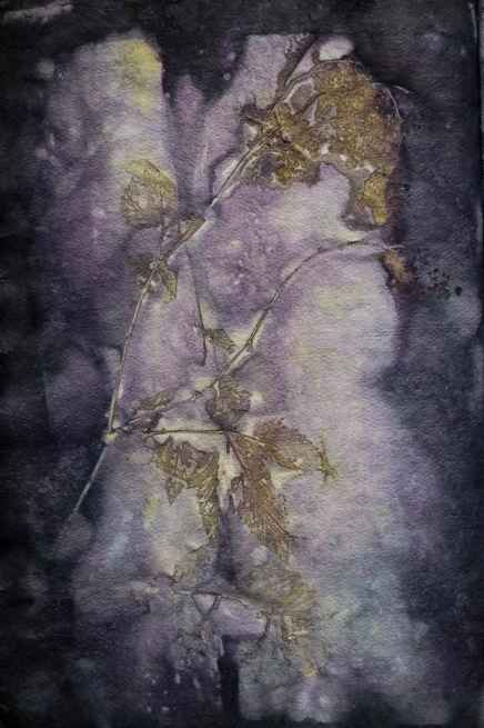 Using the "dirty pot-method" - first print I used logwood which gives a deep, strong violet. For the next two cookings I didn´t clean the pot properly