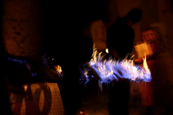ein Papier-N wird abgebrannt | |