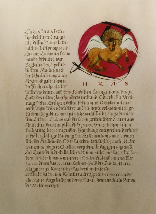 Das "Lukasblatt" wurde von der Maler- und Lackiererinnung Frankfurt am Main in Auftrag gegeben und wird als Druck an Jubilare der Innung verliehen.