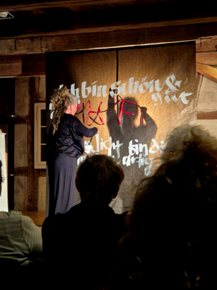 Sigrid Artmann ist Schriftkünstlerin, Autorin und Dozentin aus Ludwigsburg. Für ihren eigenwilligen Stil wurde sie mit zahlreichen Preisen ausgezeichnet. Ihre Arbeiten sind in internationalen Ausstellungen und Sammlungen vertreten. Kontakt: s-artmann@t-online.de www.schrift-kunst-werkstatt.de Die Fotos stammen von SIMON MALZ Gesang: Tanja Leonhardt und Stephan Flommersfeld Alle Audios: T. Leonhardt ![]() |