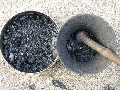 amt den tatsächlichen Effekt auf der Haut nach: eine körperhaltige Farbe, die direkt nach dem Auftrag ölig glänzt und in der die Kohlepartikel reliefartig sichtbar und fühlbar sind. |