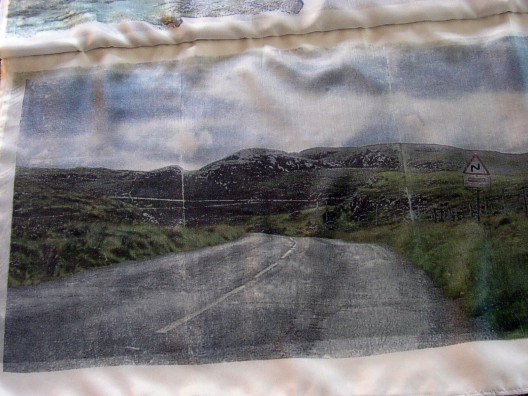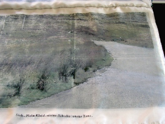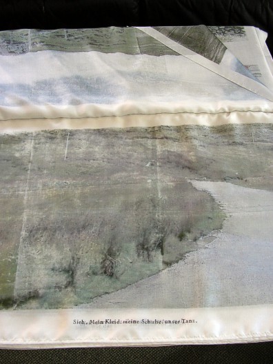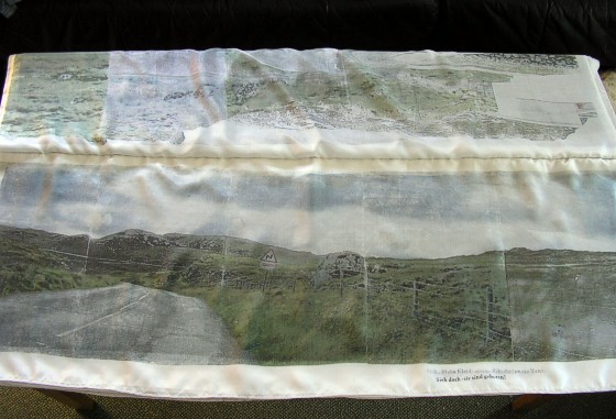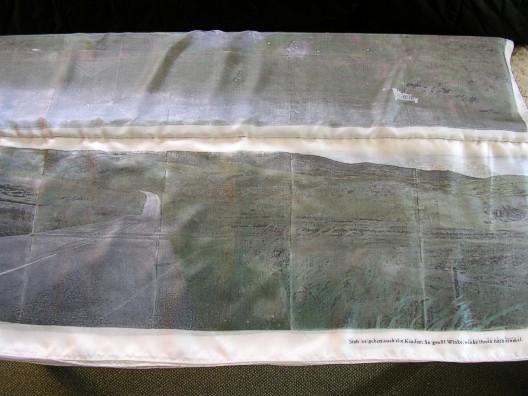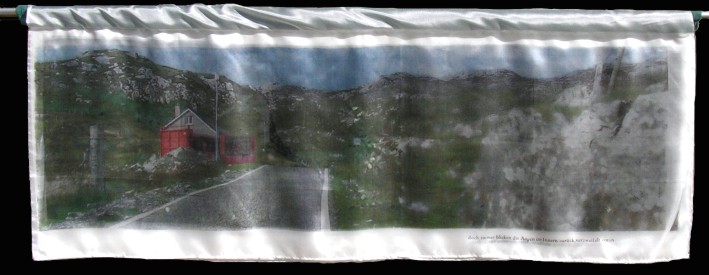 Breite:140 cm Höhe:53cm 14 Seiten aus Pongé-Seide 12 Motivseiten + Deckblatt und Schluss eingenäht in grünen Leinenrücken mit Aufhängestange Entstehung 2010 |