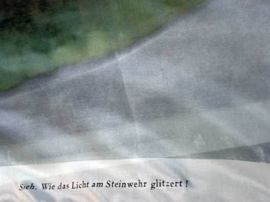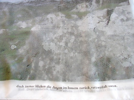 Das Buch kann auch auf dem Tisch liegend umgeblättert werden. Textzeile gestempelt jeweils am rechten unteren Rand. Fotodrucke über Inkjet-Verfahren |
