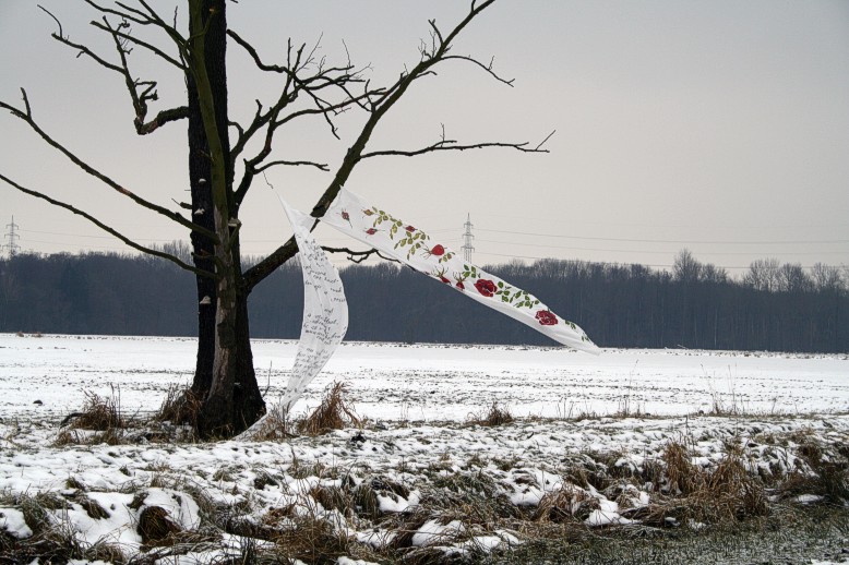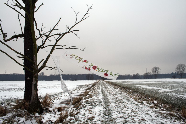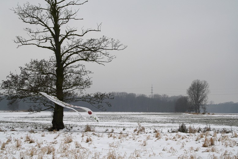 auf der Bruchwiese, leichtes Schneetreiben, Wind, kalt, 4. Januar 2011