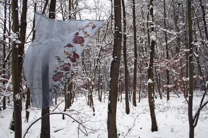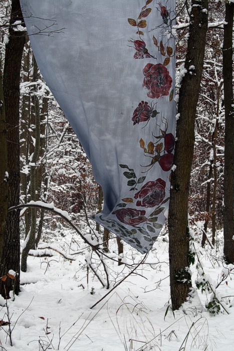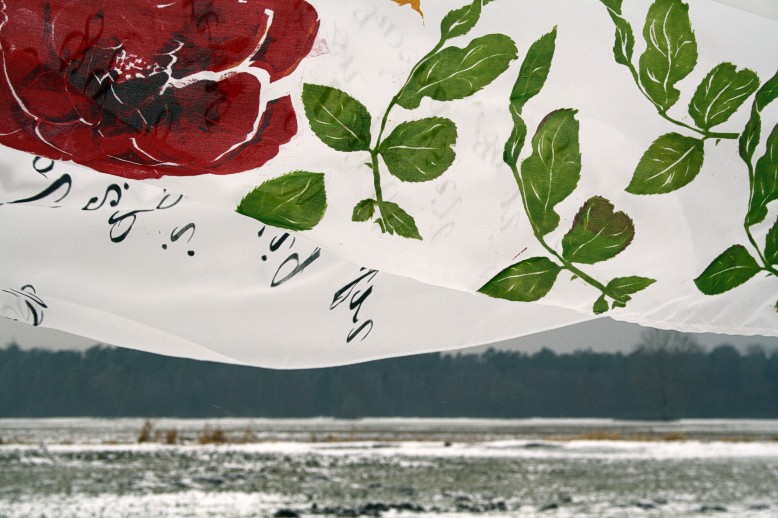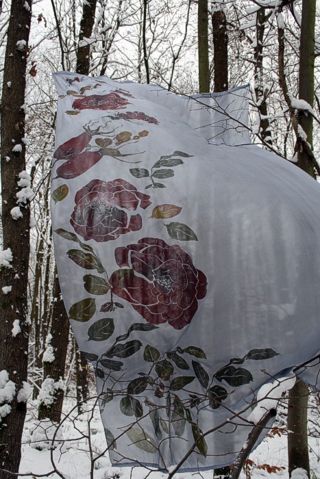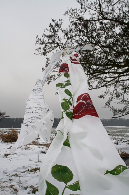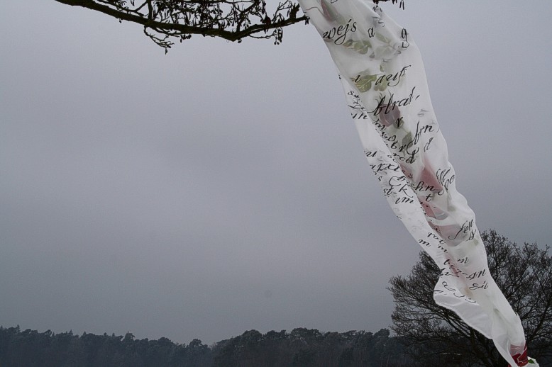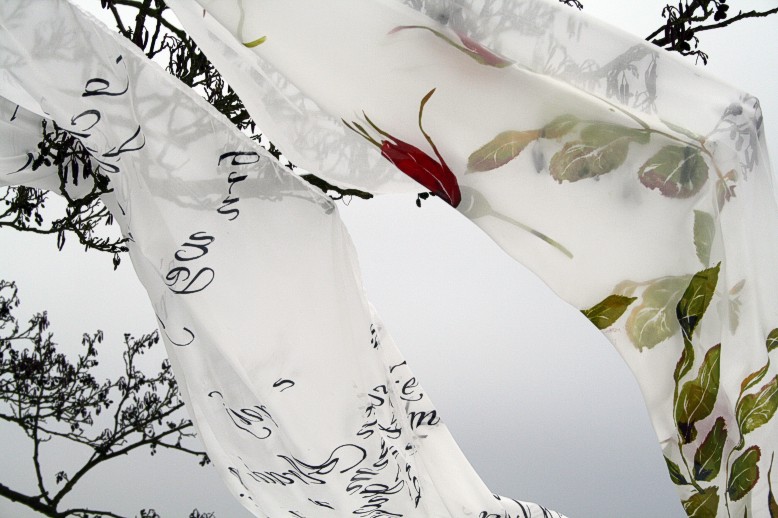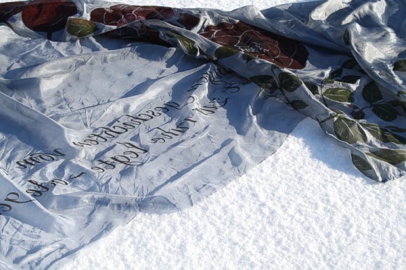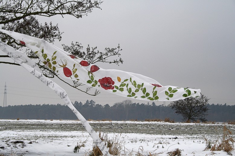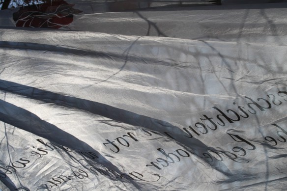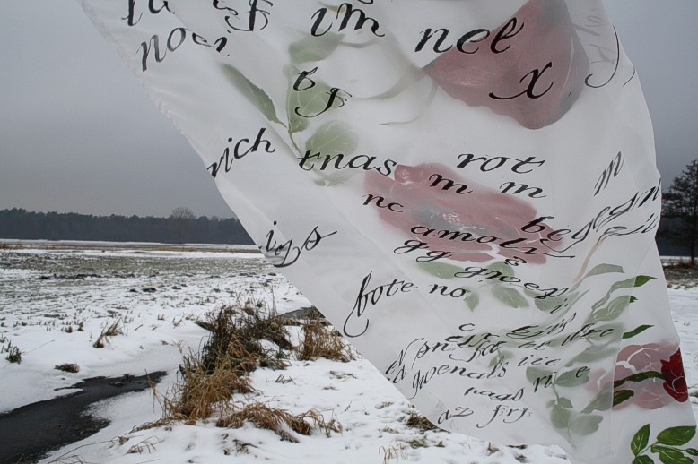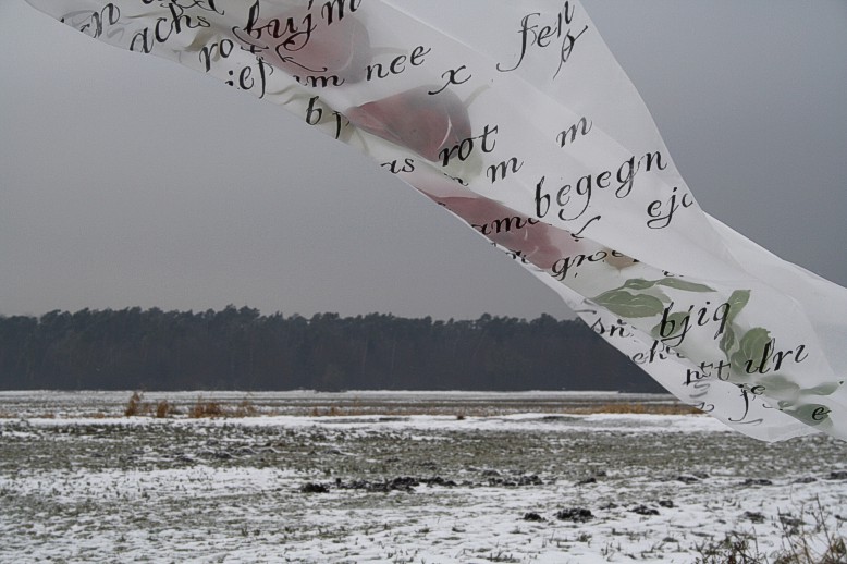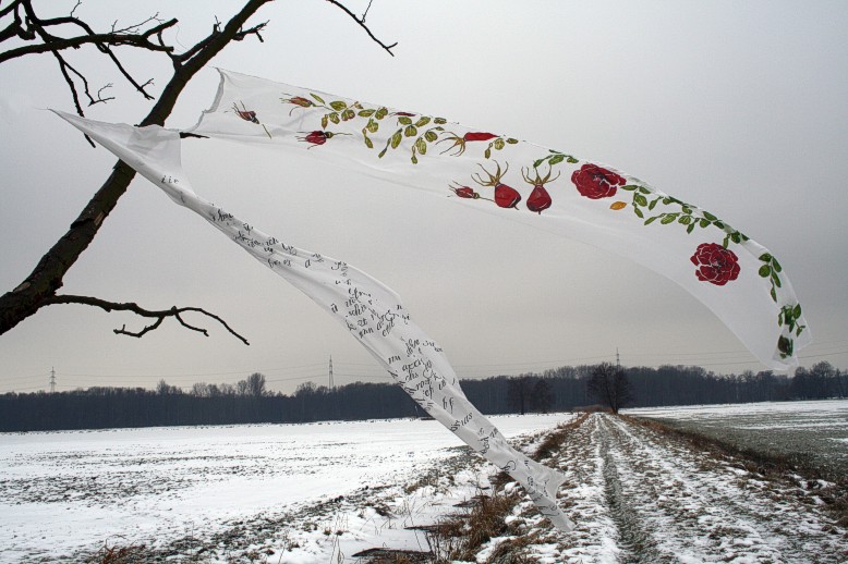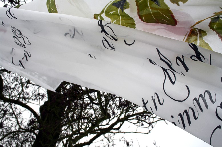 Gleichzeitig mit dem Rosentuch entstand das Schrifttuch mit Englischer Schreibschrift. Es enthält keine Worte. |