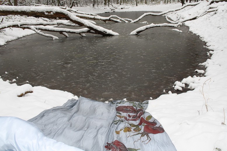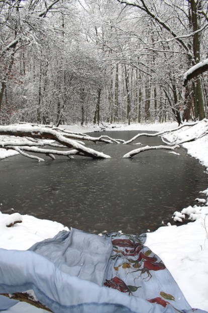 gleicher Tag, Waldweiher, gefroren (ohne Zufluss) |