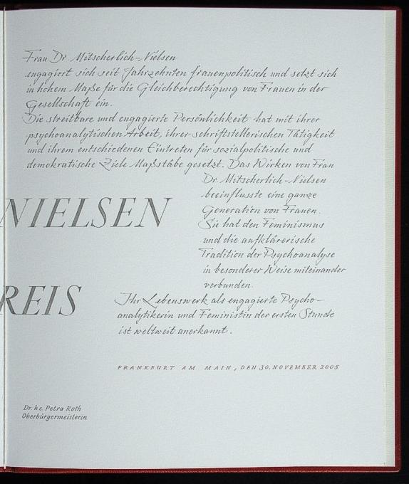 Tony-Sender-Preis 2005 an Dr. Margarete Mitscherlich-Nielsen