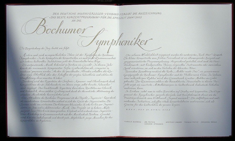 "Bestes Konzertprogramm der Saison" des Deutschen Musikverleger-Verbandes e.V. für die Spielzeit 2004/2005