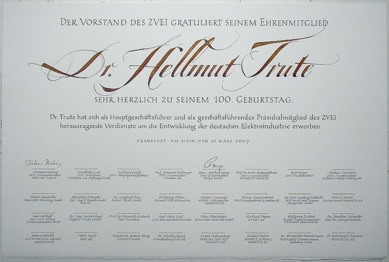 Urkunde zur Ehrenmitgliedschaft des ZVEI