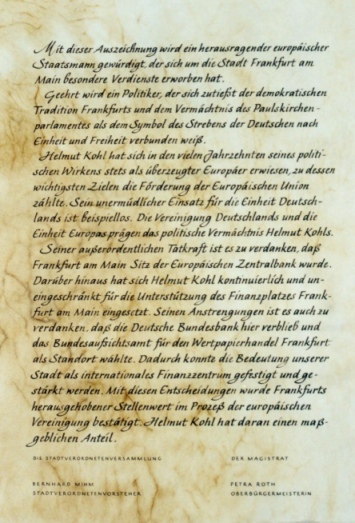 Ehrenbürgerrecht für Dr. Helmut Kohl, am 15. 9. 1999 in der Frankfurter Paulskirche