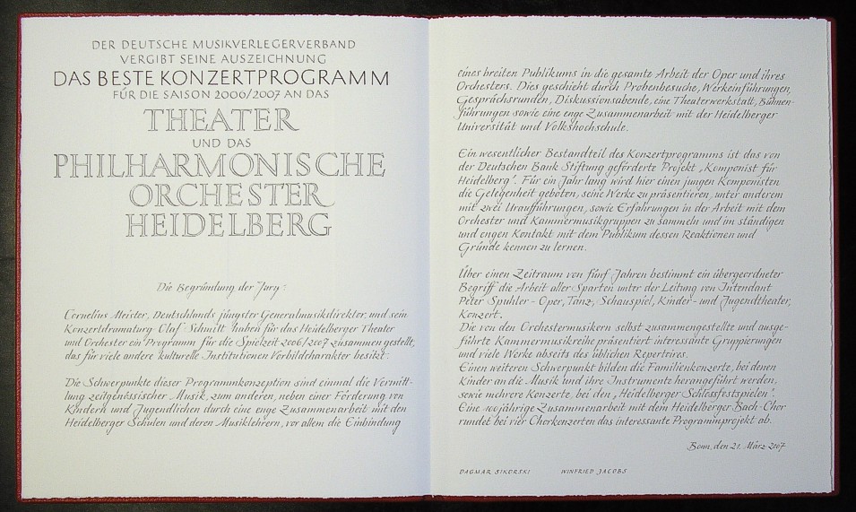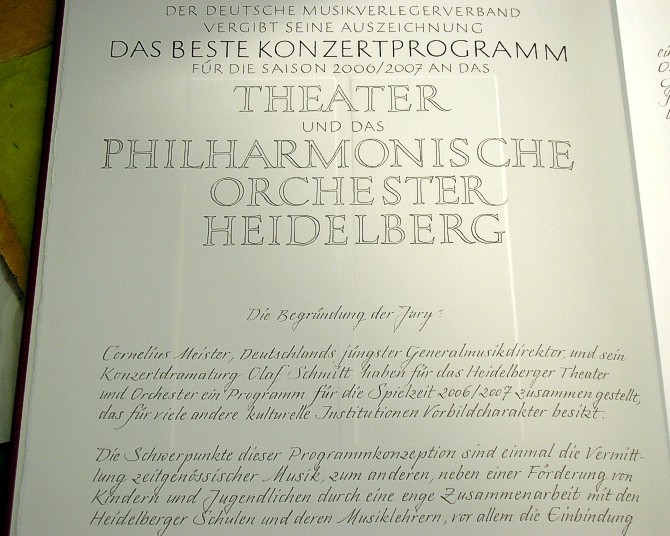 "Bestes Konzertprogramm der Saison" des Deutschen Musikverleger-Verbandes e.V. für die Spielzeit 2006/2007