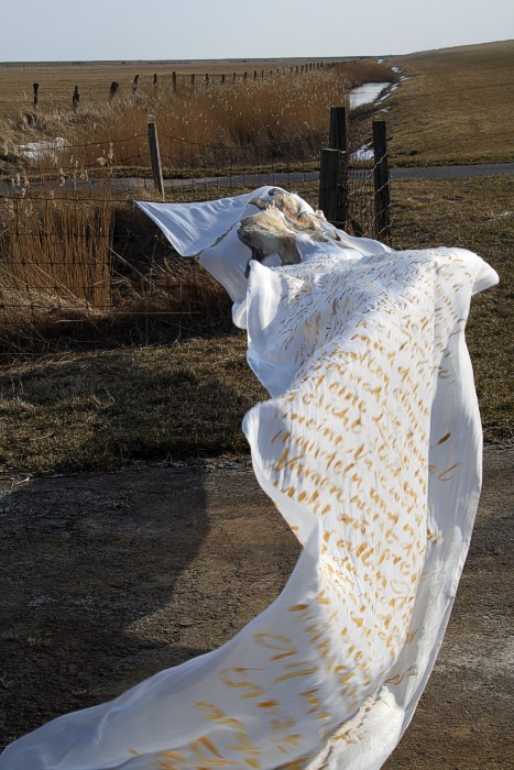 Ein Künstlerbuch zu diesem Tuch finden sie hier: Über all meinem Erzählen |