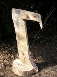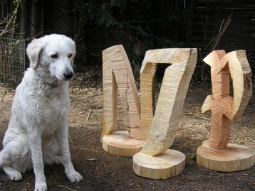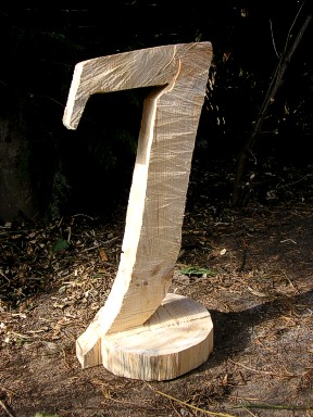 Je nach Lichtsituation verändern die Buchstaben ihre Wirkung. Ich beginne, mehr auf die Form zu achten, die im Stamm bereits angelegt ist. Das Buchen-N hat rechts und links noch seine Rinde, im Kern eine schöne Zeichnung. Auch am Ende des linken Schaftes eine natürliche Verdickung durch einen Ast.