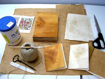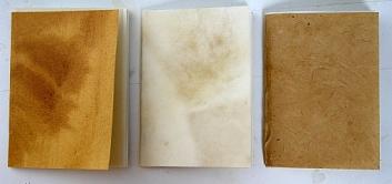 1. schweres Büttenpapier, mit Eisenoxidfarbe lasiert und danach mit