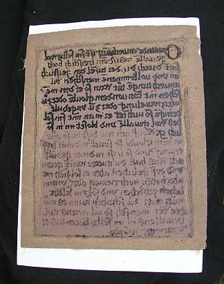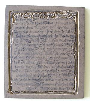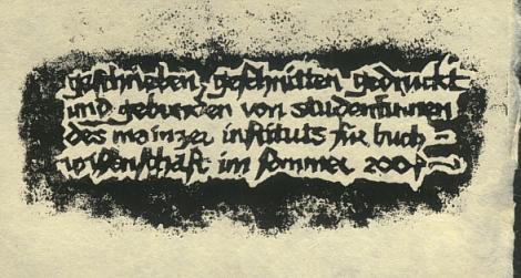 Geschriebenes Kolophon nach Übertrag mit dem Abklatschen - etwas aufgeweicht...