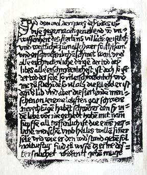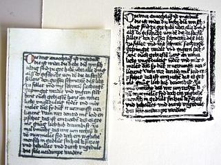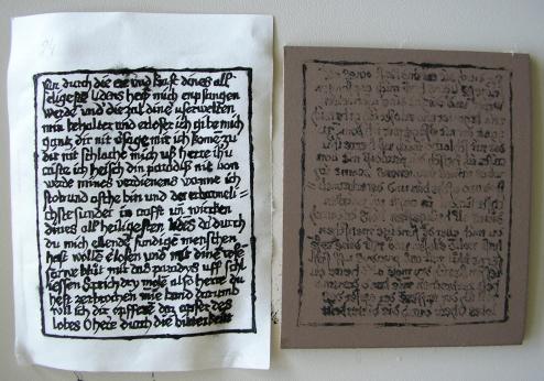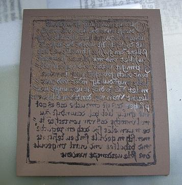 Die Schrift wird mit dem "Gesicht" auf das Linoleum gelegt und dann das Papier von hinten