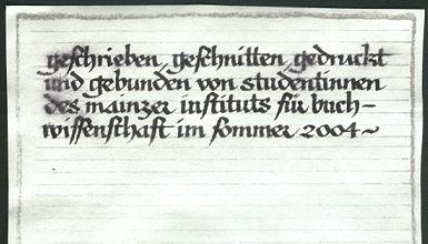 Das Lernziel bei den Schriftplatten ist es, eine Bastarda zu schreiben, sie auf eine Platte zu übertragen