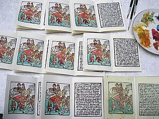bestellt, so dass wir die Kolorierung mit original-mittelalterlichen Farbpigmenten