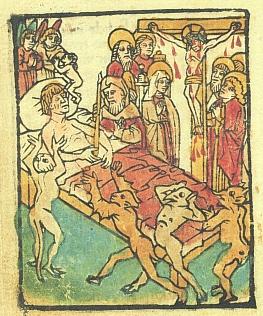 Für die Blutstropfen den spitzen Pinsel mit etwas Druck aufsetzen und nach oben wegziehen,