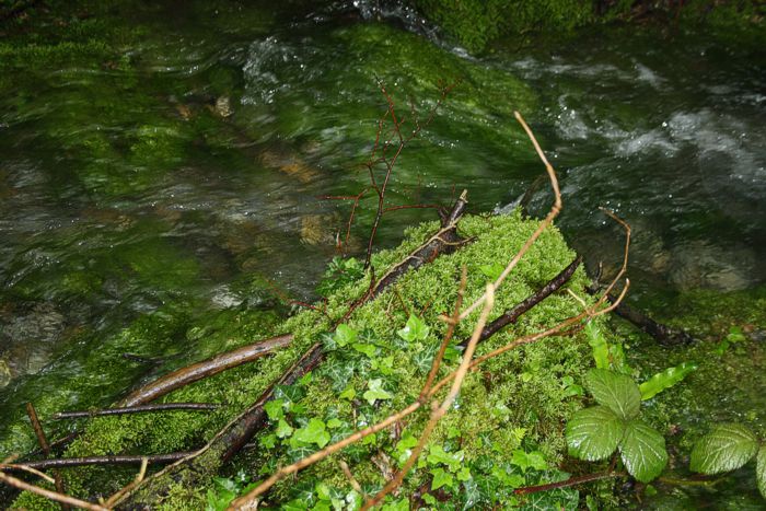 April, 24th 2014, 4 p.m., walk into the forest at the edge of Kulen Vakuf, drizzling rain, water Bosanski jezik