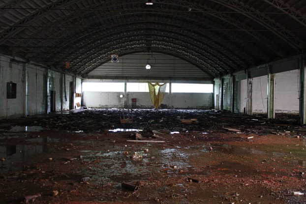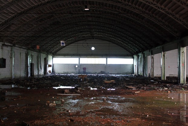 Dies ist, was der neue Besitzer, Fa. Atlantis vcap, von der Geschichte übernommen hat: Eine riesige Fabrikhalle, in der vor dem Krieg Textilien hergestellt wurden. Seit Kriegsende liegt die Fabrikationsstätte verlassen und geplündert da. |