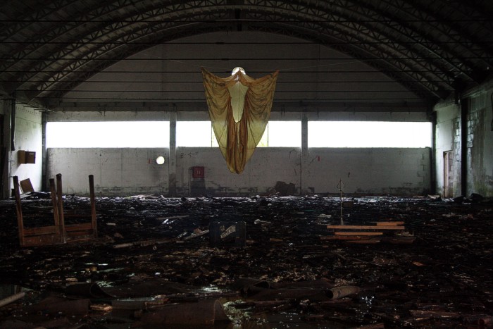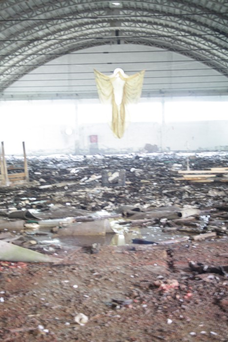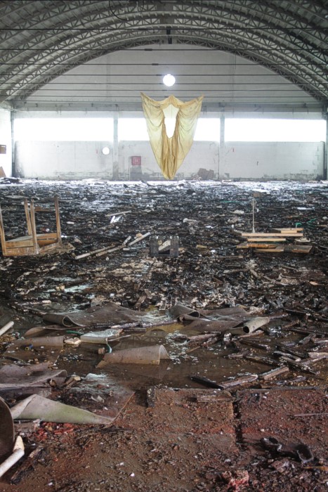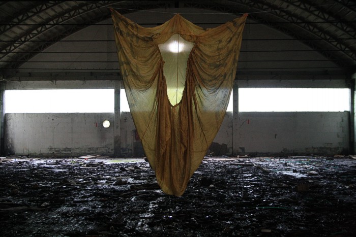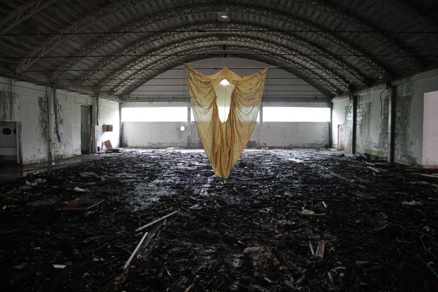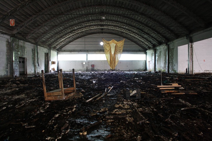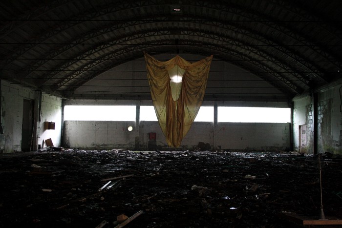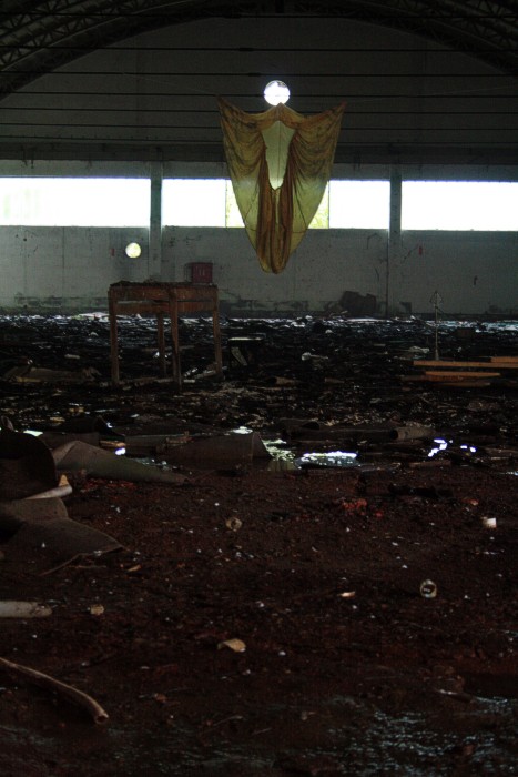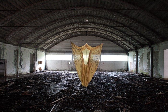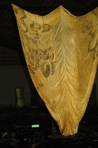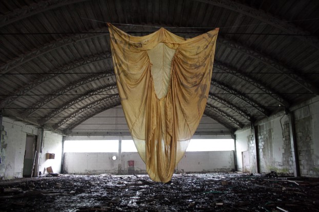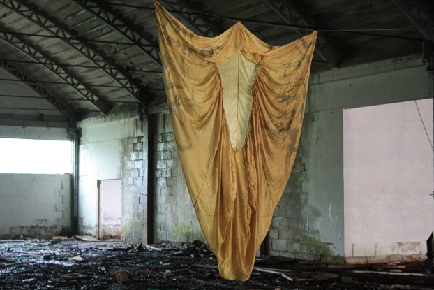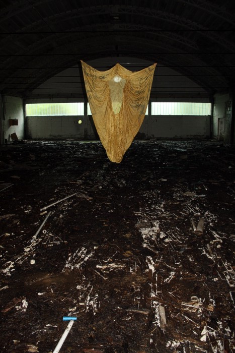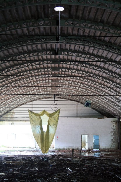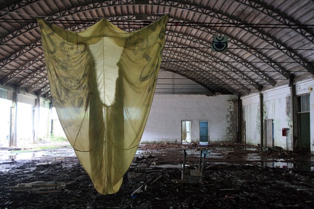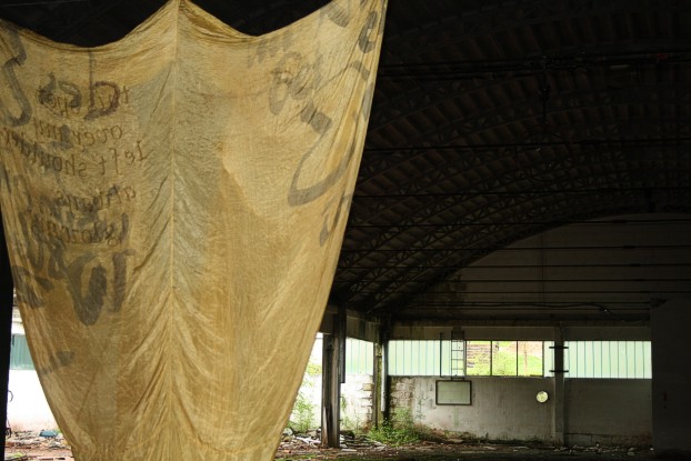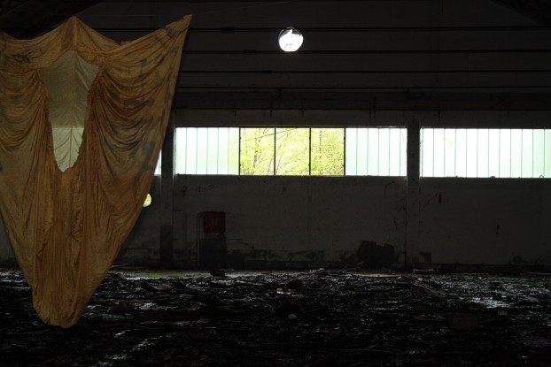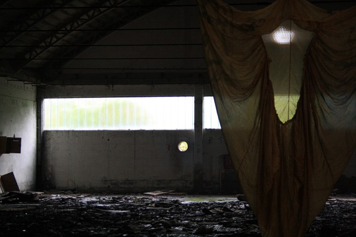 This is the old plant, now owned by Atlantis vcap. In the huge hall, textiles were produced before the war. Then the building fell asleep. Things have decomposed, others have become alive. Animals take possession of the desolated, deserted rooms. Corridors silent. Drops are falling. Behind the sound of rain the sewing women´s voices seem descernible. Hundreds of them.