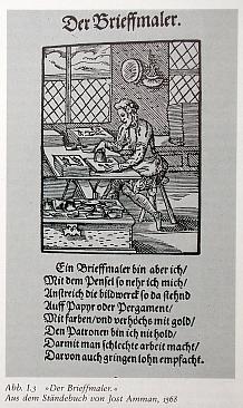 3. der Brieffmaler, er kolorierte. (Interessant: Manche Bücher wurden schwarz/weiß