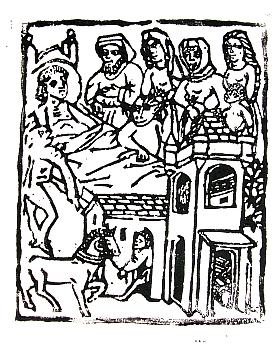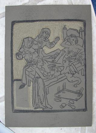Dieses ist eines von drei Blättern einer xylographischen Ars Moriendi, die sich in der Frankfurter Stadt-
