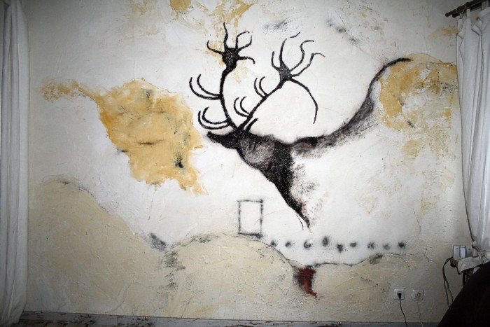Mit Rauputz und Erdpigmenten gearbeitet, Flachrelief. |