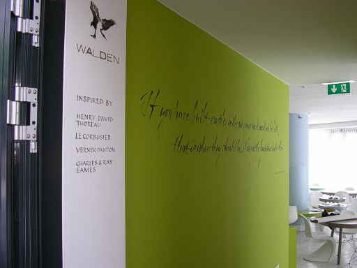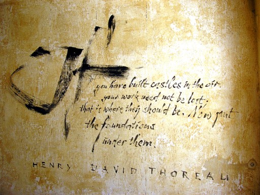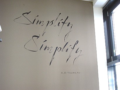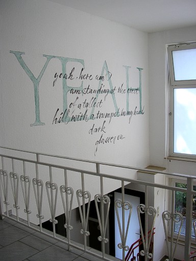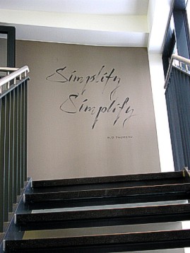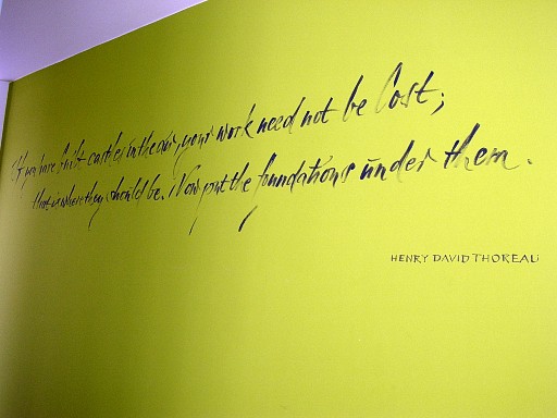 Eingangsbereich ein Zitat von Thoreau auf die Wand mit dem Pinsel geschrieben |