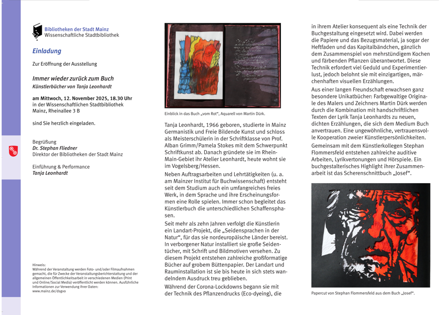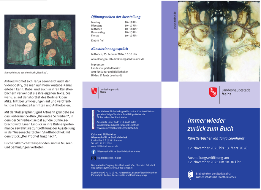 Meine Künstlerbücher in der Wissenschaftlichen Stadtbibliothek Mainz ab noch bis zum 13. 3. 2026.